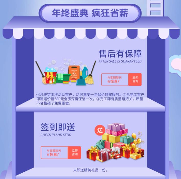 ②凡完工客戶即贈送價值580元全房深度保潔一次。