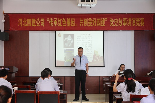 中國共產黨百年華誕激動人心。為共憶紅色歲月、傳承時代初心,6月28日下午,公司在四樓活動室舉行了“傳承紅色基因,共創美好四建”主題黨史故事講演競賽,經層層選拔勝出的26名選手激情登臺。公司黨委書記、董事長董富強發表了熱情洋溢的致辭,黨委副書記、紀委書記、工會主席李懷生出席競賽。