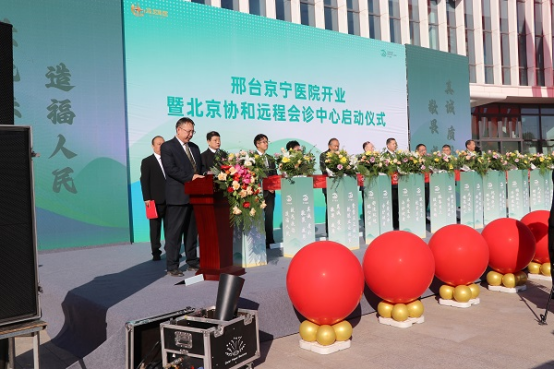 儀式現場,彩旗飄揚,流光溢彩,處處洋溢著喜慶氛圍。在熱烈的掌聲與歡呼中,啟用儀式正式拉開帷幕。楊曉明介紹了出席領導和項目使用功能,京寧醫院常務副院長孟慶聚隨后登臺致辭。