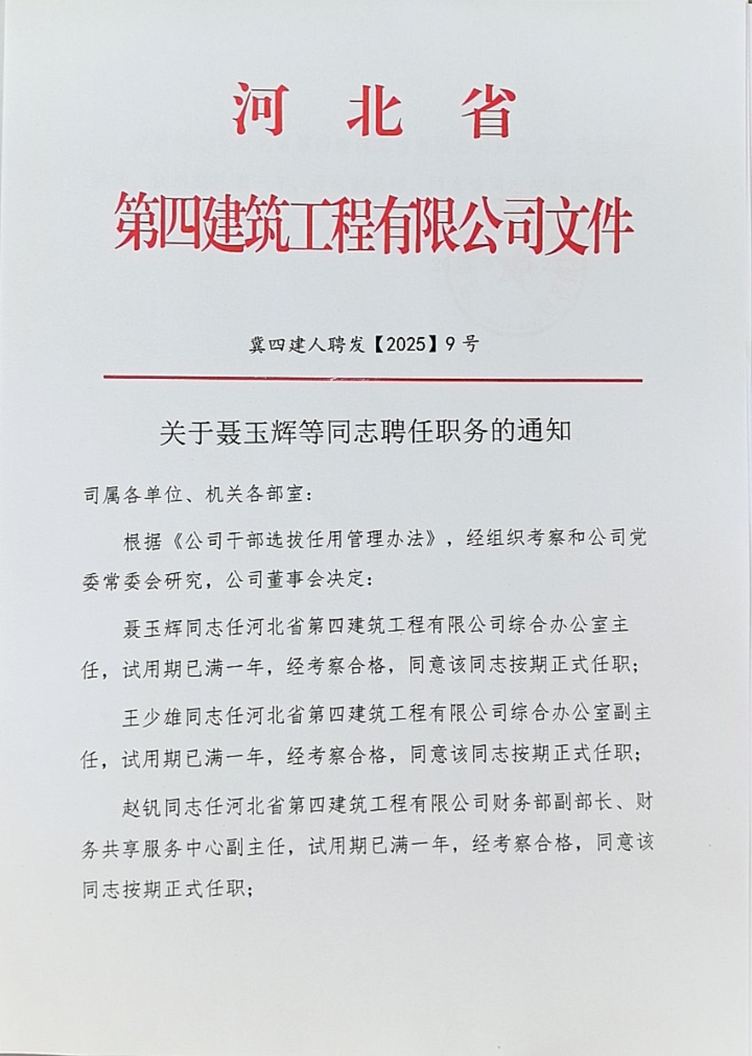 關于聶玉輝等同志聘任職務的通知